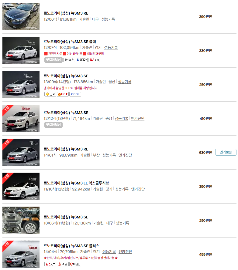 SM3의 중고차 가격을 총정리합니다. 2024년 6월 기준으로 SM3 중고차 가격과 시세를 정리해 보겠습니다.