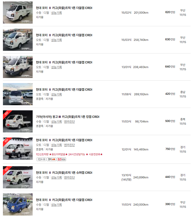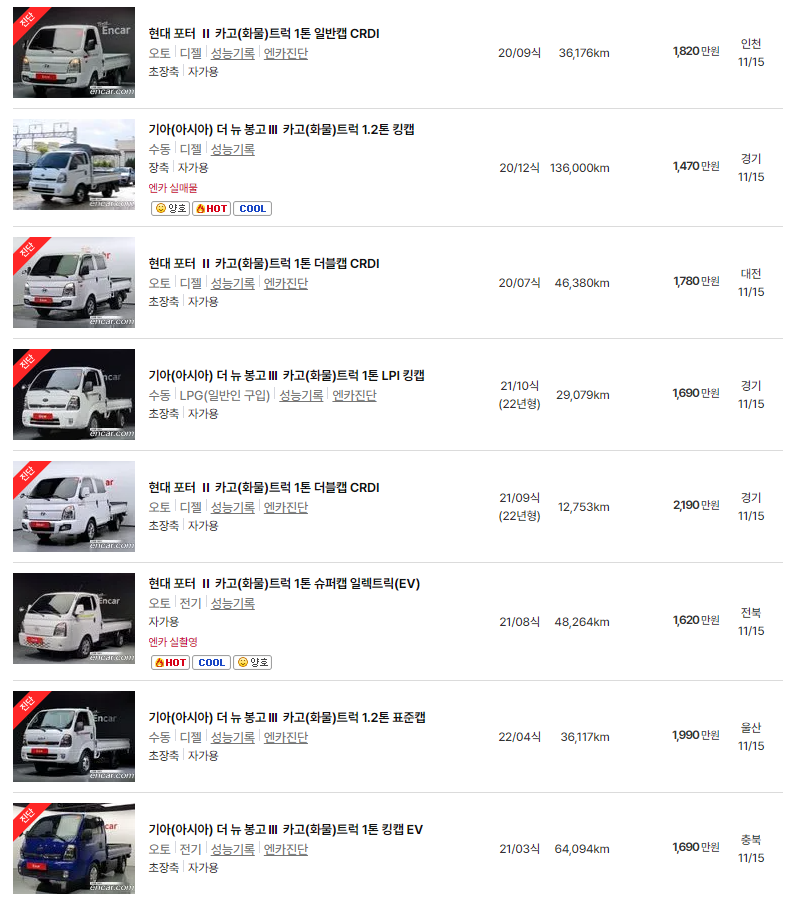 | 1톤 화물차 중고차 가격 시세표 | 25년 5월 기준 (0) | 2025.05.22 |